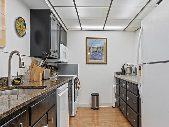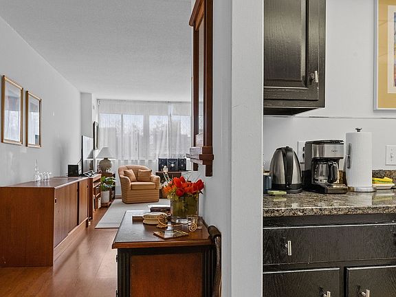 Welcome to maintenance free and secure living in Riverside Towers. This beautiful one bedroom/one and a half bath unit is open, bright, inviting and has been meticulously maintained. The foyer is warm and welcoming and leads to a well appointed kitchen, complete with granite countertops. The wall of windows in the spacious living room/dining area makes for a bright and airy place to relax, enjoy and entertain. The large bedroom, complete with another wall of windows, make this area the perfect relaxing retreat. There is a full bathroom off the bedroom and plenty of closet space. A 1/2 bath and foyer closet complete this lovely unit. The building includes many amenities: indoor pool, sauna, gym, library, laundry room and 24/7 front desk security. The monthly maintenance fee of $968 covers heat/electric/taxes/AC/water/sewer/security. This building is located within walking distance to downtown. Don't miss the opportunity to make this beautiful unit your perfect home.