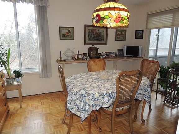Spacious corner unit #402 (1450 sq.ft.), enclosed/carpeted balcony offers river and city views; loads of natural light! Amenities: 24 hour security, indoor swimming pool, fitness center, central air, laundry center on floor, storage locker, free Wi-FI access, outdoor patio. Monthly maintenance fee incl. all utilities (not phone or cable)& taxes. 87 shares @ $1313/month