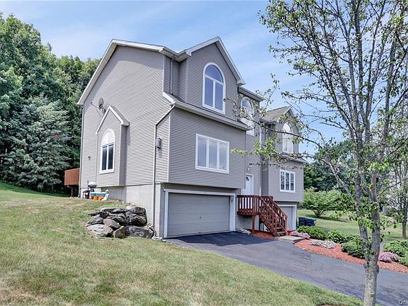 Your wait is over! Welcome home to Strawtown Farms and this beautifully maintained three bedroom unit boasting Hudson Valley views and numerous updates! Bright and light filled floorplan welcomes you with gas fireplace as focal point of the family room. Kitchen has been tastefully upgraded with crisp white cabinets, contemporary tiled backsplash and stainless steel appliances. Sliders lead to expansive deck for grilling and chilling. Enjoy a uniquely private yard for this community backing to woods for a peaceful setting. Master suite offers walk in closet and full bath and two additional bedrooms are rest assured! Hardwood floors run throughout each floor. Convenient two car garage and basement and attic provide ample storage. Enjoy the amenities of Woodbury Parks and recreation offering pool, lake, beach area, dog park, community activities and more. Monroe Woodbury schools and an ideal commuter location just minutes to bus and train to NYC, highways, Woodbury Commons Premium Outlets and dining.