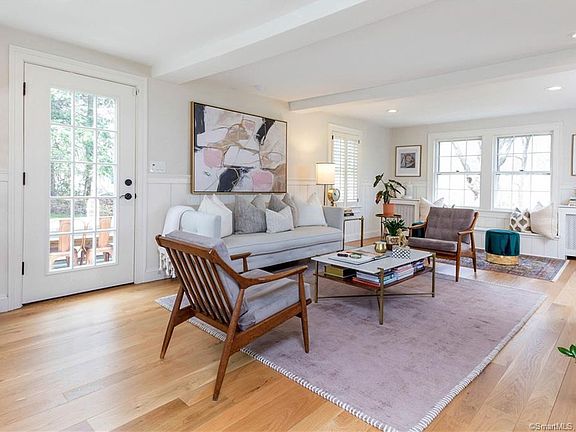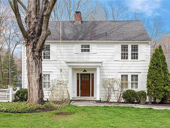 This 1925 quintessential colonial is a WOW home. New broad-plank natural hardwood floors throughout provide a fresh platform for the sparkling new kitchen, three marble and white bathroom redos, and new light fixtures, hardware and design everywhere. High end fixtures elevate everything in this four bedroom with classic proportions where abundant windows bathe every room with light. Living space on three levels includes a sun-touched walk-out lower level with an oversized hearth-style fireplace. The first level offers an open floor plan for living room, dining room, and kitchen with a family room that connects the kitchen and the two car garage. The second level offers all four bedrooms and two baths with sliding barn doors. The lower level is walk out with a beautifully finished parlor/potential fifth bedroom, and unfinished area for storage and laundry as well as an option for gym equipment, studio work, or other. The walk up attic is floored and offers lofty clearance and further space for expansion. Outside is the private eden of a lawn that sprawls a football field's length to 130 feet of river runs through it frontage on the actual Silvermine River. Riverview Drive itself is a cul-de-sac of large lots and desirable homes. Walking, bike-riding, exploring, games and nearby schools, shopping, and transportation are all part of the lifestyle.