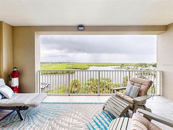 Experience coastal living at its finest in this beautiful 2-bedroom, 2-bathroom condo located on the 5th floor of the highly desirable Riverwalk in New Smyrna Beach. Nestled along the Intracoastal Waterway, this residence offers stunning views of the marina from the front balcony and views of the lighthouse from the back patio. Inside, you'll find a spacious open-concept layout filled with natural light. The gourmet kitchen features granite countertops, stainless steel appliances, and ample cabinetry, flowing seamlessly into the living and dining areas. A built-in desk in the guest bedroom provides a dedicated workspace, while custom closets in both bedrooms offer stylish and efficient storage. The master suite includes an updated bathroom with dual vanities and a walk-in shower, and blinds throughout the unit add privacy and light control. The condo also includes an in-unit laundry room with full-size washer and dryer, tile flooring in the main living spaces, and carpet in the bedrooms. Step outside to a large private patio with panoramic views of the Intracoastal Waterway—perfect for relaxing or entertaining. The unit is located in the golf cart district, making it easy to access local attractions, and includes an assigned parking space in the garage (space # 21) along with additional kayak storage. On the 5th floor is an additional storage closet for beach gear, bikes, or seasonal items. The pet-friendly grounds are beautifully landscaped and provide a tranquil setting for full-time living, seasonal retreats, or investment opportunities. This meticulously maintained condo combines luxury, convenience, and waterfront tranquility. Minutes from the beach, Canal Street, Flagler Avenue experience all the local attractions art shows, car shows, farmers market and special events. Riverwalk offers resort amenities with a large pool, fitness room, theatre room, bocce court, shuffleboard, tennis, pickle ball and several grills on the property. Contact Carmell Patterson today to schedule a private showing and experience Riverwalk living at its finest.