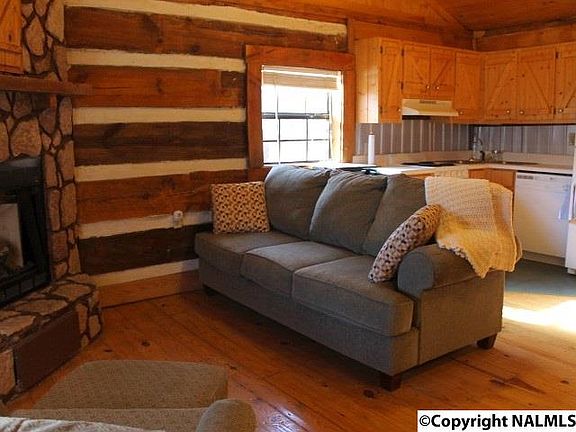 PERMANENT RESIDENCE OR EXCELLENT INVESTMENT OPPORTUNITY AS A WEEKEND RENTAL! Two cabins on a wooded lot just minutes from DeSoto State Park and Mentone Cabin 1 is named "Standing Still" and has approx 640 sqft on one level with pine floors,log walls,T&G ceiling,two gas log fireplaces,and covered deck. Cabin 2 located directly behind is named "The Story" and has approx 432 sqft with pine floors, electric fireplace and loft bedroom with jetted tub.Both cabins sold furnished with all appliances and each have 1 bedroom,1 bath,jetted tub, separate shower,covered porch,metal roof, deck and hot tub Great week-end get away or money making business