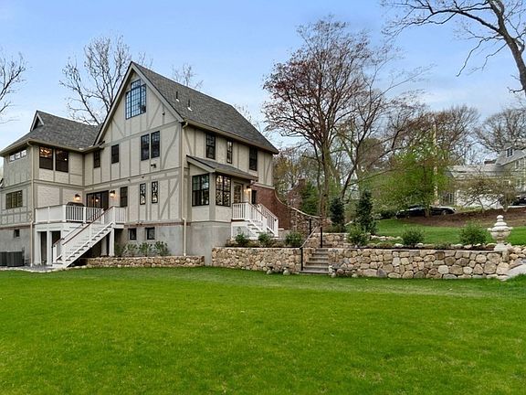 This stunning, impeccably renovated Tudor offers exceptional space and style. Fabulous open floor plan with high end finishes in one of Wellesley's most desirable neighborhoods. The gracious entry opens to an elegant double height foyer with exquisite millwork. A spacious dining room leads to the chef's kitchen with an oversized island, top of the line appliances and an abundance of windows. An inviting family room with gas fireplace and built ins provides room for all to gather. The coveted home office with access to landscaped grounds and a bright living room complete the 1st floor. The primary suite is a serene retreat with tray ceiling, luxe chandelier, 2 walk in closets and a stunning bathroom. A generous en suite bedroom and two more bedrooms with adjoining bathroom finish the 2nd floor. Exceptional bonus space on 3rd floor include playroom, bedroom, and full bath. The walk out lower level has exercise room and mudroom. Manicured grounds include multiple patios to enjoy!