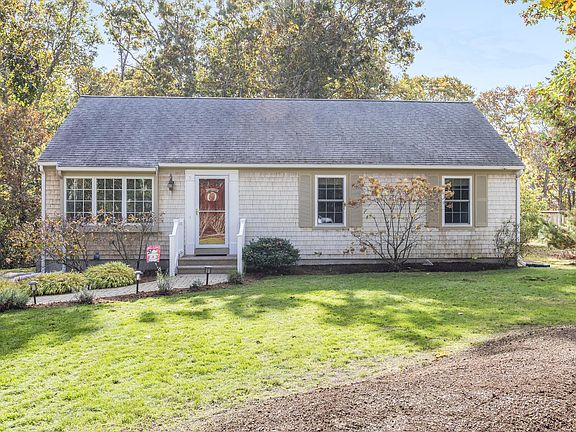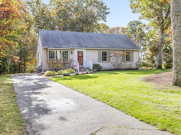 Sweet 3BR, 2 Bath home with open living, dining, kitchen. The Andersen sliding glass door in dining area opens to pressure treated deck overlooking the beautiful backyard and beyond. Great outdoor cooking opportunities! Patio, shed and outdoor shower...a Cape Cod must! Hardwood floors in the living/dining areas and tile floors in kitchen & baths plus a tile entrance at front door Carpet in hallway and the three bedrooms. Many beautiful upgrades including first floor laundry! List of improvements from owners under documents. Full basement with interior access and bulkhead access. Efficient electric heat; natural gas on Rocky Way.This adorable property, loved and well cared-for by the current owners since 2008, is located on a small, tranquil cul-de-sac and centrally located to the Nantucket Sound beaches, Long Pond and Sand Pond, the bike trail, restaurants and shopping. Truly a Gem!