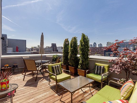 Open staircase leads to your upper level master bedroom with en-suite full bath and private 280SqFt terrace with views of NYC skyline. The terrace also can be accessed from the main level living room via external staircase.