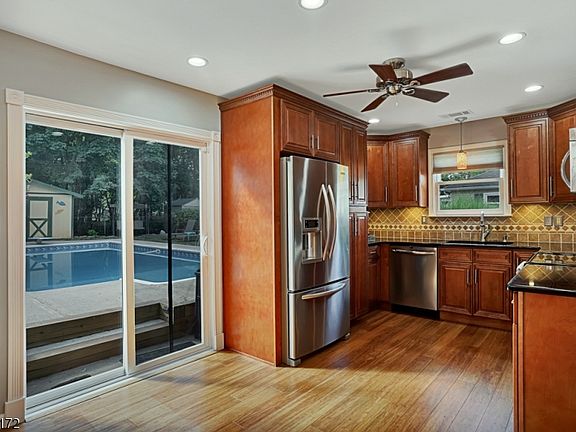 Amazing home on large lot in desirable neighborhood. Beautifully landscaped, paver walks, & front patio. Spacious living room w/bamboo HW flooring thru home. A wood-burning stove heats the entire home on winter days. Open concept Kitchen & Dining Room w/room for an extended dining set. Renovated with Granite counters, tile backsplash, SS appl., under/over lighting. Large 1st-floor bedroom w/dbl closets & another first-floor bedroom. Renovated full bath w/jetted tub finishes 1st level. Upstairs is a sizable primary Bedroom w/Bamboo HW flooring and a walk-in closet. 4th Bedroom and a renovated full bathroom complete the 2nd level. Staycation in your backyard with an inground pool, large patio, fire pit, pond, gazebo, veggie garden, and plenty of space to entertain. Energy-efficient HVAC & windows. Home warranty.
