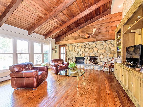 Sprawling West Hills Farm Ranch Privately Situated on level one acre property at the end of a quiet cul de sac. Spacious layout offers 5 bedrooms & 3.5 baths. Formal dining room & great room with beautiful vaulted ceilings and stone fireplace. First floor master suite. hardwood floors throughout. Updated windows and siding. 20x40 gunite in ground pool. Professionally landscaped grounds with large brick patio areas perfect for entertaining! Close to CSH train, parkways, shops and West Hills Park