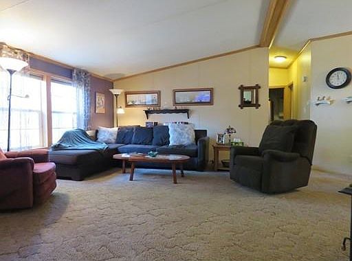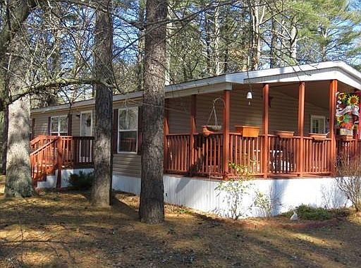 Come see this nicely maintained double wide mobile home that boasts 3 bedrooms and 2 full baths. One is nicely welcomed by the inviting open floor plan of this home. The spacious family room offers a cathedral ceiling and is great for entertaining. The kitchen is equipped with a newer range, newer dishwasher, and a portable butcherblock island. The dining room offers a cathedral ceiling and has a slider that leads to the light and bright 4 season sun porch that features walls of windows. Master bedroom with a cathedral ceiling and double closets. There is a handy laundry area off the kitchen. Enjoy and relax on the front porch of the home. Additional features include central air, good sized rooms, a private setting, off street parking and a storage shed. Set up your showing today!