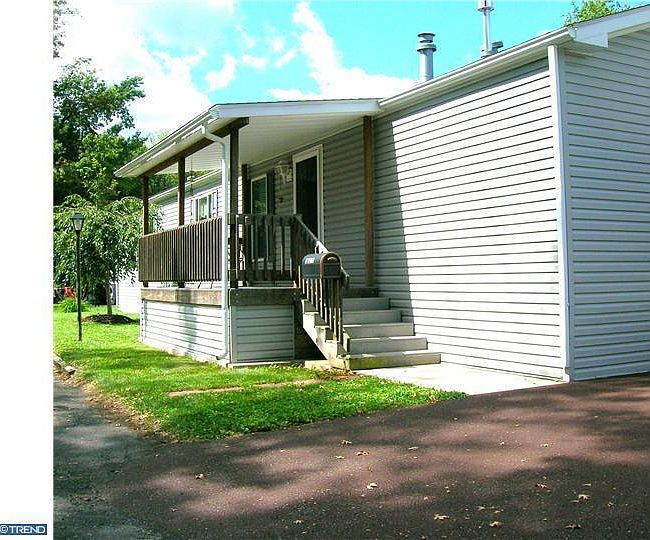 5 Years Young and Restful Mobile Home located in Village Scene, a 55+ Community. Close to major roads and many area businesses! This home features carefree living with a modern, maintenance free Trex decking front porch, beautiful front entry door and bright interior. Kitchen offers recessed lighting, newer appliances, plenty of cabinet space, double sink, ceiling fan and a dining area. There are 2 nice-sized bedrooms & 2 full baths with skylights for an abundance of natural light. Neutral decor thru-out, wall to wall carpeting. Laundry room off kitchen has its own outer exit door. Living room includes built-in hutch with shelves. Home has Central Air, Driveway and street parking, plus a storage shed. Room to build a ramp for handicap access at side door of home. Shopping and Rte. 309/Turnpike nearby.