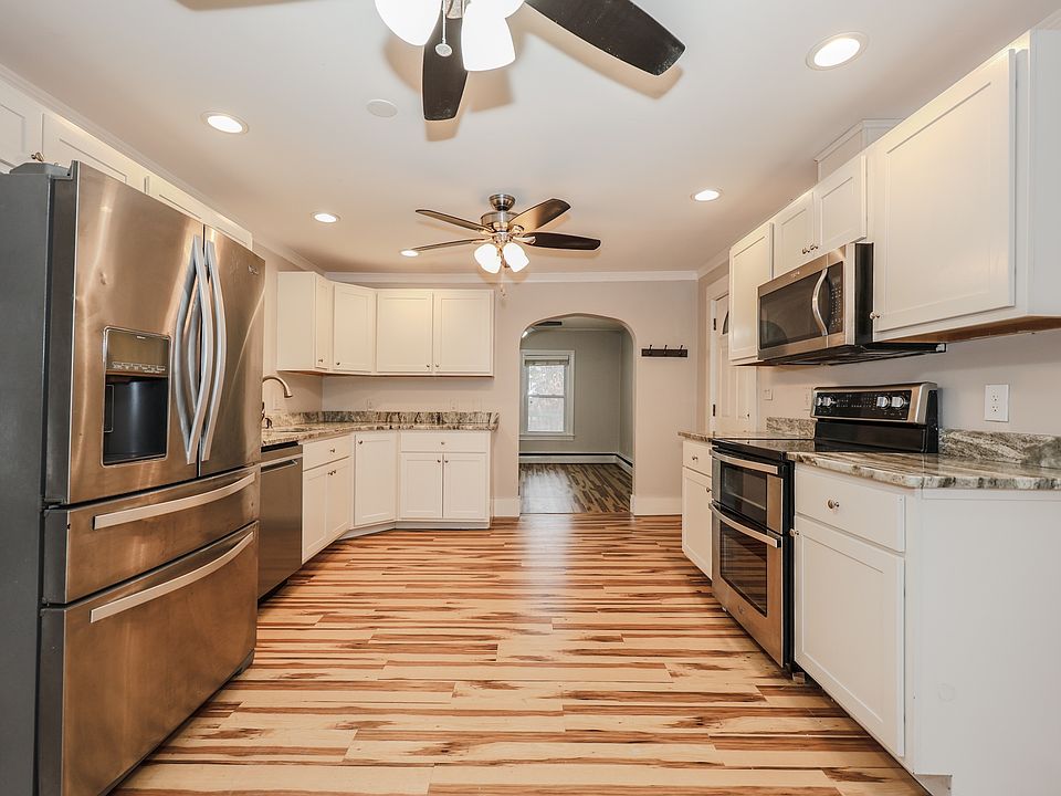 HEAT & HOT WATER INCLUDED! Newly renovated 2 bedroom 1 bathroom Unit in great location of Manchester on quiet side street! 5 mins to both Bedford and Downtown Manchester. - Fenced-in yard - In-Unit Washer/Dryer - Beautiful open kitchen with granite countertops and stainless steel appliances - Clean and renovated flooring, fresh paint - Large bedrooms - Covered front deck & large side deck - Ceiling fans in every room - Access to shared basement for extra storage - Pets allowed for an additional monthly fee - Off street parking - Large two car garage available for an additional monthly fee Owner pays for Heat, Hot water, Water, Sewer, Trash. Tenant responsible for electric only. No smoking. Pets allowed for a monthly fee.