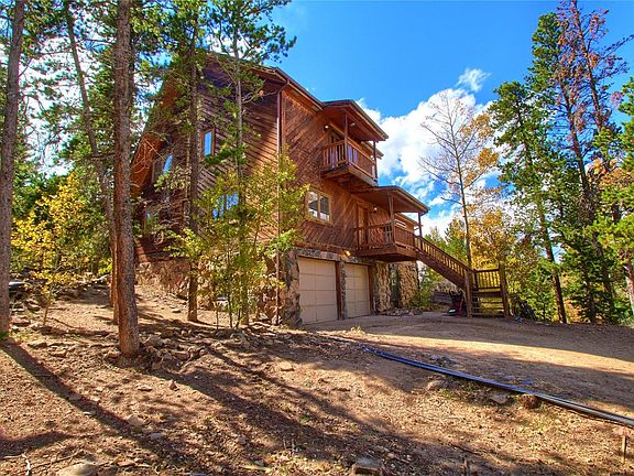 PRICE REDUCTION! Mountain living at it's finest- Beautiful 3 bedroom home with walk-out basement & Indian Peak mountain views throughout. Living room with vaulted ceilings, skylights, new wide plank wood floors throughout, moss rock wood fireplace, dining room & ample natural lighting. Open kitchen with quartz counters, stainless steel appliances & breakfast nook with wood stove. Main floor bedroom with 3/4 bathroom. Upstairs features master bedroom w/ private covered balcony- spectacular Continental Divide views. Shared full bathroom & 3rd bedroom. Walk-out basement with family room, 1/2 bath & laundry room. Sunroom with hot tub leads to fully fenced-in yard with mature trees. Separate cabin with kitchenette, 3/4 bathroom, wood stove & loft- perfect space for an artist studio/in home business! Attached 2 car garage. Paved road access maintained by county. 30 min to Boulder & Golden, 40 min to Downtown Denver & 20 min to Nederland & Eldora Ski Resort! Don't miss this incredible home!