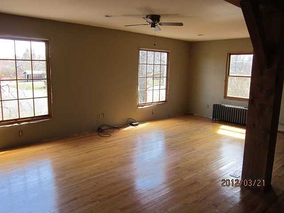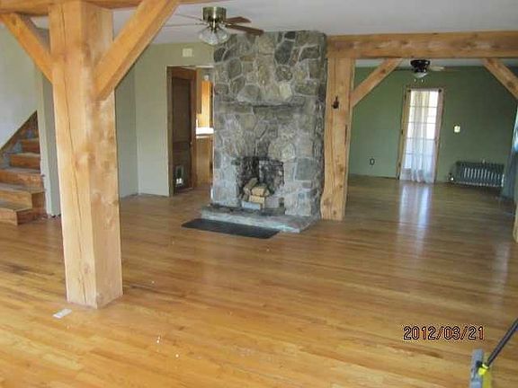 BLANDFORD Motivated Seller!! Bright and welcoming country home on an acre of land that abuts the park. This home has been remodeled with newer kitchen, refinished wood flooring, nice open porch, newer roof, laundry now on the first floor and a newer septic system. Nice entry with ceramic tile flooring and a coat closet, large open living room with exposed beams and a fireplace flows into the dining room. Good counter space in the remodeled kitchen with electric and gas connection for the range. Full bath has been remodeled with ceramic tile flooring and new soaking tub with jets. Walk-up attic allows for room to grow...you could easily have three bedrooms. The two car garage has a work area and a large room upstairs that would make for a great Bonus Room area. $190,000