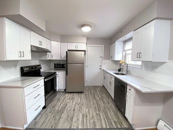 Updated 2nd floor condo in Ridgemont Gardens. Renovated in 2020- Kitchen with newer oven range, dishwasher, cabinets & counter tops and Bathroom. Beautiful Hardwood floors throughout. Storage bin in basement with shared laundry area. Heat and hot & cold water included. Ridgemont Gardens is just blocks to shopping center with restaurant, deli, etc. Close to NYC bus. 2 assigned parking spots in rear lot with rear access door. Rental application & full credit report required. Tenant required to carry tenant insurance. Required at lease signing: 1st month's rent, 1.5 month security & 1 month fee. Tenant pays electric, cable, & phone. No smoking and no Pets.