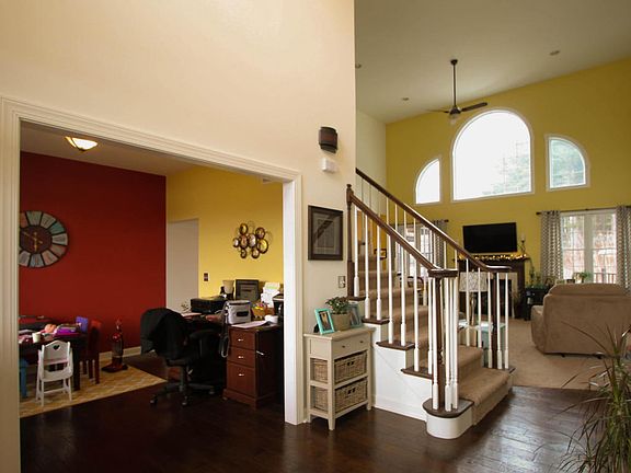 This recently constructed home features an open floor plan with over half an acre of flat land. The vaulted ceilings in the main living area open into the kitchen that features beautiful dark wood cabinets with corian countertops and island. The master suite flanks the living area on the first floor for convenience and privacy from the 3 bedrooms that are located on the 2nd floor.