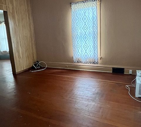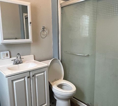 Two bedroom house with 3/4 bath, large kitchen plus dining room, large living room and good size bedrooms. Corner lot with fenced back yard. Nice sized yard. Great location Tenant is responsible for water, garbage, heat, taking care of yard. A year lease is required. Spacious two bedroom home. Fenced back yard with a storage area. Covered front porch.