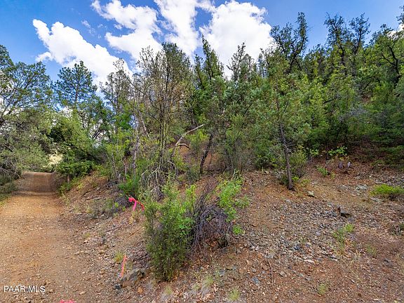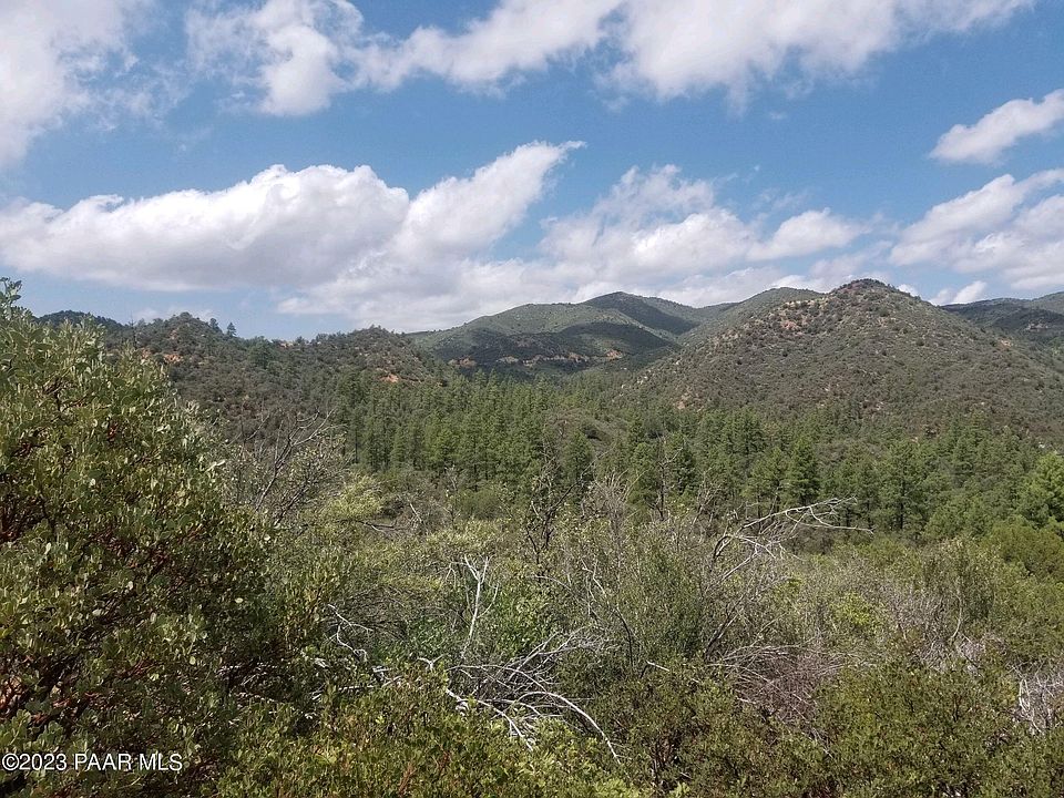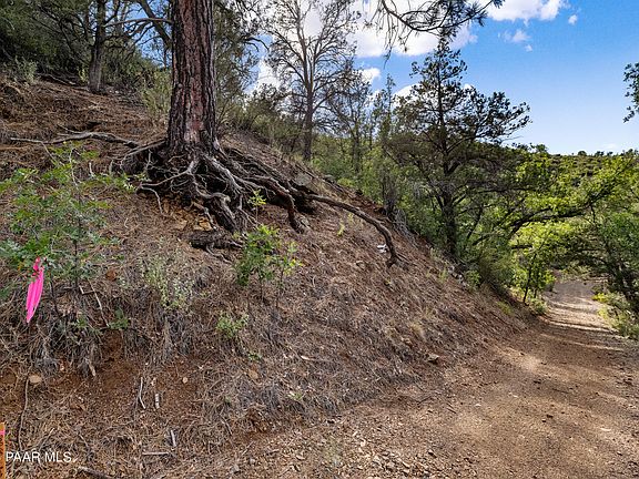 Amazing tranquility and privacy here... This property is ''off grid'' just off Forest Service Rd 73 in a gated community approximately 20 minutes from downtown Prescott. This parcel is largely tucked up against the mountain with the most accessible build area being toward the lower section of the parcel. Building higher up on the parcel would afford more significant views but also increased excavation cost. Seasonal creek and forest views across the road. National forest very close by...