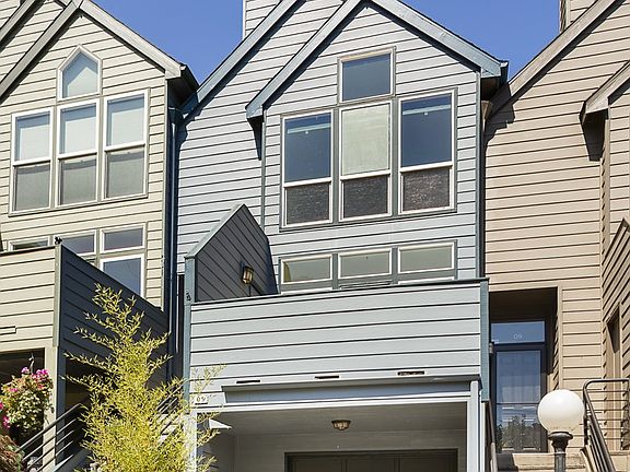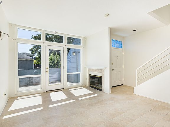 Fantastic Johns Landing townhouse! This light & bright home features large floor to ceiling windows, fireplace, vaulted ceilings, 2 ensuite bedrooms, open floor plan, and a large patio with amazing views of Mt Hood, Johns Landing & Willamette River. Perfect location a block from Elephants & close to restaurants, coffee shops, parks, grocery & Downtown. Home is complete with a 2 car garage, ample storage, low HOAs, and no rental cap.