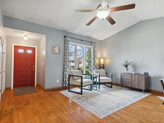 Stepping into this well-maintained home, you'll immediately love the ambiance the vaulted ceiling, beautiful hardwood floors, and wood burning fireplace provide. The living room flows nicely into the dining area and kitchen, which is touched by natural light from the clerestory window. Primary bedroom features glass slider with its own private balcony. Lower level includes spacious family room with walkout, a third bedroom, full bath, and plenty of storage. Mostly level and fenced yard provides a perfect sanctuary. Many recent updates include new siding, deck, and fridge in 2023; new washer and dryer in 2022; new roof in 2021. Fresh paint throughout much of the home. Easy access to North Ridge Park, where you can connect to hundreds of miles of trails. Enjoy peace of mind with a one year home warranty included!