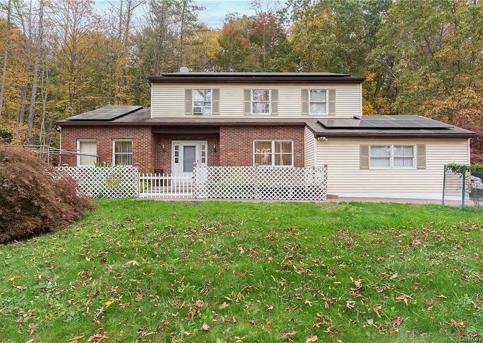 AO 3/13/2022. Enjoy the privacy of this 4 bedroom, 2.5 bath Colonial. Unbelievably low heating and electric costs with Solar panels. Less than 25$/month! Formal living room with hardwood floors and skylights. Dining room with hardwood floors. Family room and kitchen with Granite flooring. Fireplace in the family room. Updated kitchen cabinets. Gas stove with propane. 4 bedrooms up, currently 3 bedrooms, just need to reinstall a wall. First floor 1/2 bath has been remodeled. Full basement with a bdry system. 2 sheds. A great house to call home. Convenient location. Showings after 11:30 only.