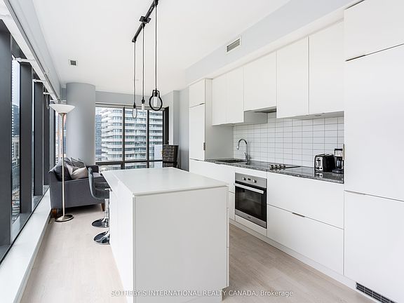 Sophisticated southeast-facing suite offering 718 sqft of sleek, modern living. This one-bedroom plus spacious den features two full baths, floor-to-ceiling windows, and a private balcony with expansive city views. The open-concept layout showcases a contemporary kitchen with a functional island and dining space, and stone countertops. The primary bedroom includes an ensuite bath and closet, while the den is ideal as a home office or can be used a second bedroom. Enjoy 24-hour concierge service and premium downtown living, steps from TTC, restaurants, shops, parks, universities, and more.