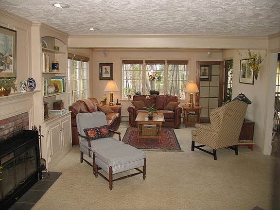 Beautifully maintained home on a serene setting in a fabulous neighborhood*Loads of hardwoods*Living Room with wall of built-ins*Formal Dining Room*Bright Kitchen with large eat-in area, lots of task lighting, white painted custom cabinets & slider to Sunroom*Family Room with fireplace surrounded by built-ins, skylights, lots of big windows*Nicely sized bedrooms*Master offers built-in TV cabinet over fireplace*Master tiled shower*Sunroom with lots of sliders/long windows & access to deck overlooks spacious backyard*Nicely landscaped lot.