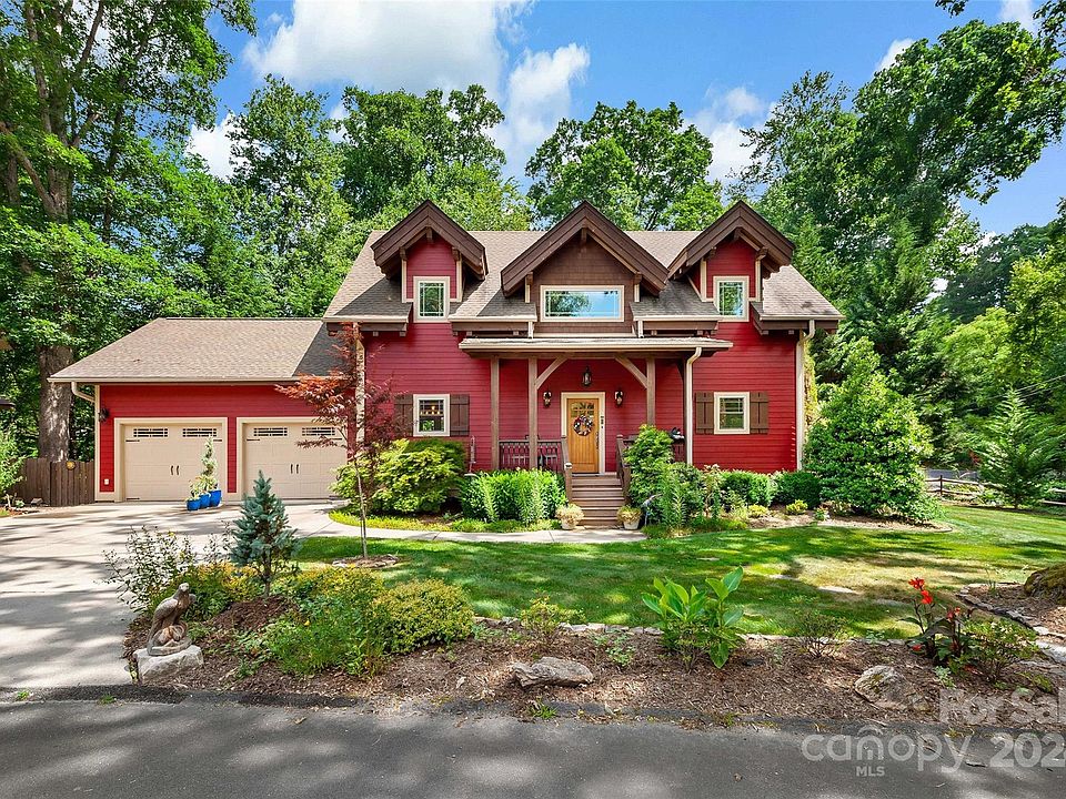 Beautiful Timber frame home near Lake Tomahawk Park (access by sidewalks) in the heart of Black Mountain! Meticulously maintained home on large lot (over ½ acre) w/small creek running through backyard. Rustic charm/modern conveniences make your new primary residence or second home idyllic. Interior features Open Floor Plan w/ Vaulted ceilings, Wood burning Fireplace insert (2022), main level Primary BR w/ en suite bath (Double Vanities, Walk in Shower, Jacuzzi Tub, and Walk in Closet). Upstairs w/open Loft and 2 BRs/Study. Imagine your Detached Studio (385sf with AC/Heat, wood floors, loft, sky light) as a Home Office, Hobby Space, or Storage! Updates: Exterior paint (2018), Composite rear deck boards (2018), Sealed Crawl space w/dehumidifier (2019), Zoned HVAC (2021), Tankless Water heater w/circulating pump (2022). Laundry room on upper level plus main level closet is setup for a stackable unit. HOA Dues paid as needed for road maintenance and neighborhood entry.