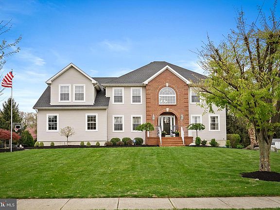Welcome Home to this beauty in desirable Saran Woods in Robbinsville! At just over 3600 sq ft, this home features 5 bedrooms and 3 and 1/2 baths. Beautiful brick arched entryway around the front porch greets you before you enter. Light & Bright two story foyer flanked by the formal living room and spacious dining room with custom molding. The kitchen has been updated throughout with white cabinets, quartz countertops, center island with seating, subway tile, double pantry, BRAND NEW stainless steel dishwasher and oven. top of the line refrigerator two years young. Family room with wood burning fireplace and built in custom cherry shelving and cabinets. 5th bedroom on first floor with double closet. Laundry/mud room with cabinets, closets, sink and backyard access. Warm dark hard wood & Core lux flooring throughout the first floor. The second floor features a primary suite fit for royalty! Large ensuite siting room/home office, full bathroom with soaking tub, dual vanity and stall shower. Just wait until you see the massive walk in closet that spans the width of the primary bedroom. the other 3 bedrooms are good size all with double closets and hallway bath with tub, dual vanity sinks. Huge finished basement with full bathroom! Brand new carpeting and freshly painted with recessed lighting, area with sink and ceramic tile flooring perfect for a bar/dining area. Separate room with built in shelving perfect for a playroom, media room or another office. Outside you'll find a freshly landscaped front and backyard. A 25 x 50 paver patio, perfect for those summer nights ahead! Other features include BRAND NEW ROOF 10/2021, BRAND NEW HWH 4/2022, Newer AC dual zone (approx 5 years old) , New large shed 2021, security system with motion detector, invisible fence, radon away system in place with new fan. Great for commuters, located close to Hamilton and Princeton Junction Train station and major routes. Don't miss this opportunity to enjoy the good life!