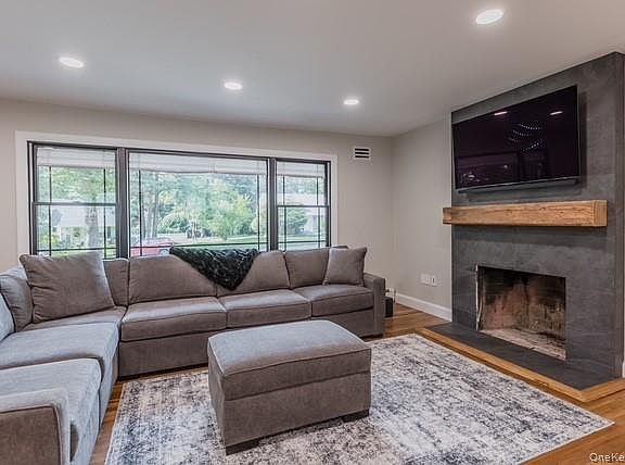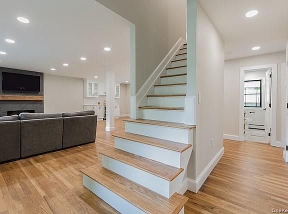 Welcome to this beautiful, tastefully redone home. This home was brought down to the studs and totally modernized. Featuring an open floor plan. With all new electric 200-amp service, high hats, throughout the home, new windows, wood floors, a chef's kitchen with stainless steel appliances, a gas oven and stove, pot filler, center island with microwave, quartz counter tops, subway tile back splash. drink fridge. Spacious living room with a wood burning floor to ceiling tiled fireplace. New bathrooms with gorgeous tile, vanities and lighted mirrors. Large bedrooms with plenty of closet space. All new doors, and moldings, front door with side panels. Full basement, new gas efficiency combi boiler, new central air, 2 car garage with sheet rock walls, high hats and epoxy floors. In-ground pool with newer liner. Quiet neighborhood, Three Village School District!