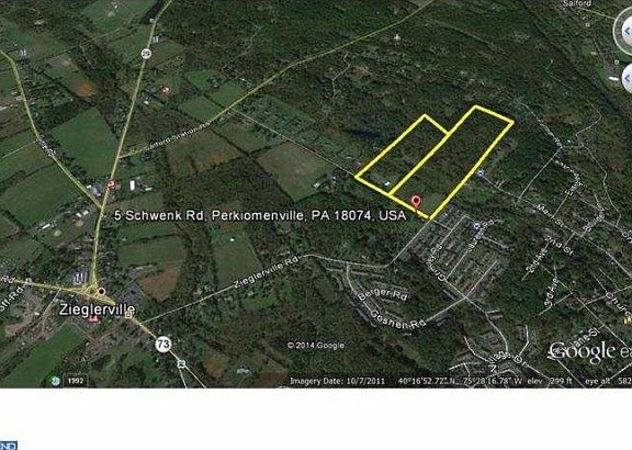 A majority of two land parcels, 38-00-02332-006 & 38-00-02332-005 (Lots 24 & 25 on the Tax Map), are being offered for sale. In 2007, Lower Frederick Township had granted preliminary approval for a 41 lot subdivision on 48 acres. The owner intends to retain a section of each parcel along Schwenk Rd. that would include the existing homes at 5 & 13 Schwenk Rd. Based on the plan that was preliminarily approved by the township in 2007, the owner would retain approximately 9.5 of the 48 acres. Public utilities exist in the area, sewer lines are in Zieglersville Rd. Water and electric are nearby. The property(s) are mostly rectangular in shape with a moderate slope from side to side and toward the rear.