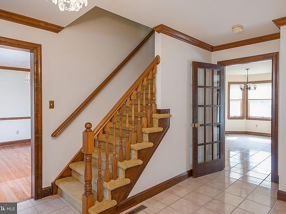 This Stately Center Hall Colonial has everything a family needs and more! The Traditional Floorplan has separate Living and Dining Rooms with Hardwood Floors, French Doors, and Crown Molding. The Cherry Kitchen has Corian Tops and Tile Floors and Opens to a Family Room with Brick Fireplace, Crown Molding and Sliders to a Lovely Sunroom overlooking a Beautiful Flat Yard. The rear hall connects the Kitchen to the Garage and has First Floor Laundry and Large Bedroom with Full Bath... Perfect for Guests or In-Laws! Upstairs includes Four Bedrooms, a Pretty Hall Bath with New Vanities and Fixtures. The Large Master has a Huge Walk-in closet and a Brand New Bathroom with Plank Floors, a White Double Bowl Granite top Vanity, Custom Tile Shower with Glass Door (on order) and Skylight. The Basement is Finished with another Full Bath, and the Seller has completed professional water proofing with warranty to transfer to Buyer. Call Listor for details.