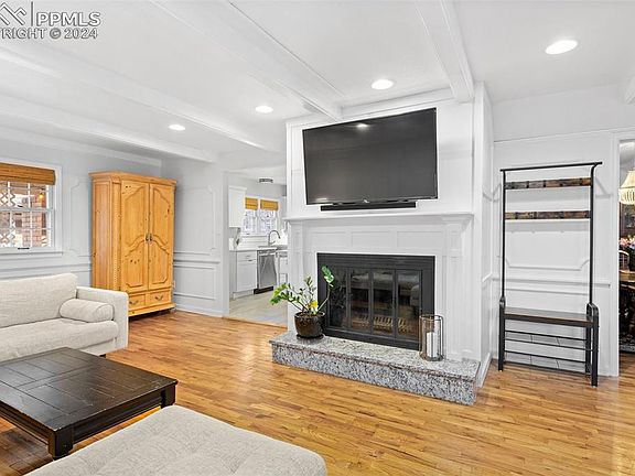 Located in the heart of North Cheyenne Cañon, within the esteemed D12 Cheyenne Mountain School District, this home has been thoughtfully updated throughout, boasting a newly remodeled kitchen and a spacious basement. Nestled across from Cheyenne Creek, and just minutes from the prestigious Broadmoor resort and top-rated D-12 schools, this charming cañon house offers the ideal blend of tranquility and convenience. Step inside to find gleaming hardwood floors, crisp white walls, and stylish accent paneling, creating a warm and inviting atmosphere. The living room features an updated fireplace with a new mantle and granite base, while bamboo blinds add a touch of sophistication throughout the home. The remodeled kitchen is a chef's dream, featuring quartz countertops, gas range, subway tile backsplash, and ample built-in storage. Off the kitchen, a covered deck with a wood-burning fireplace provides the perfect spot for outdoor relaxation. The main level also includes a bedroom, laundry closet, and full bathroom with double vanities. Upstairs, three additional bedrooms offer comfort and style, while the fully finished basement provides extra living space with a bar area and storage. With A/C, this home offers modern convenience and peace of mind. Enjoy easy access to hiking trails in Stratton Open Space and North Cheyenne Cañon Park, as well as quick access to HWY 24 for all your outdoor adventures. Don't miss out on this must-see gem!