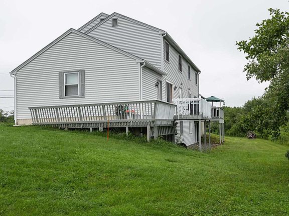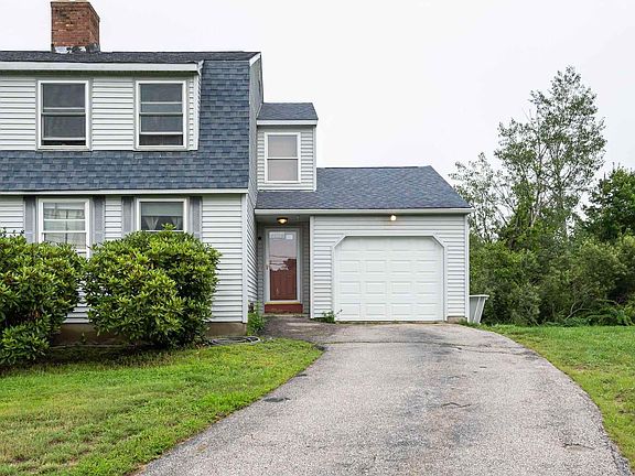 This 2 bedroom condex with garage is set in a cul de sac neighborhood in East Derry. It offers a large side yard and rear wrap around deck overlooking the wooded back yard. The first level floor plan contains a living room, 1/2 bath with laundry and an eat in kitchen. A rear glass sliding door leads to the rear 2nd story deck. Upstairs two ample size bedrooms are separated by a full bath. The lower level offers a utility room and a family room complete with wood stove on a brick hearth and a walkout slider to the back yard.