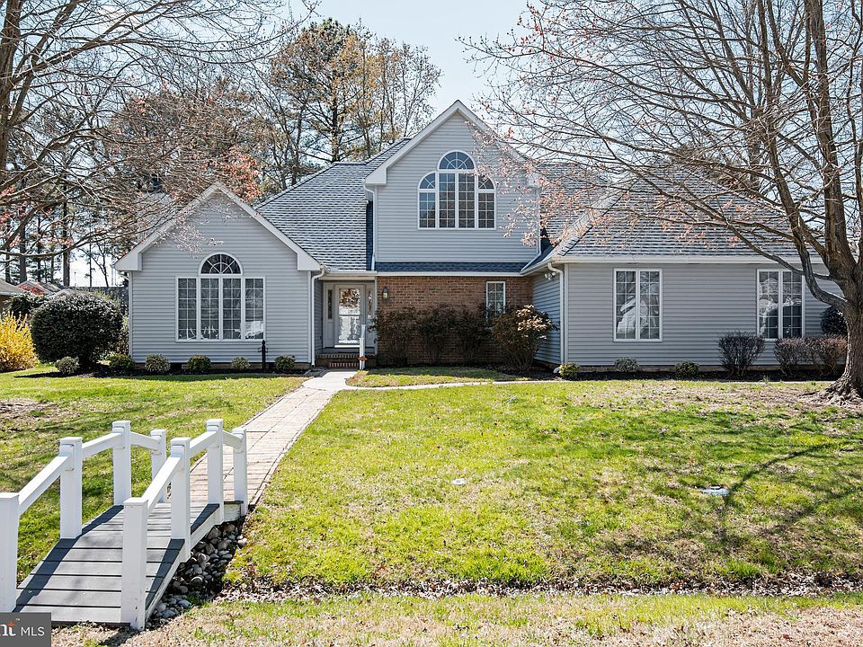 Stunning meticulous custom home in sought after neighborhood of Algonquin. Surrounded by water, this lovely community has private pier for water access. This home has excellent curb appeal and a pleasing contemporary design. This large home boasts 2800 square feet of living space , four bedrooms 2 and a half baths and a first floor primary suite complete with walk -n closest and outside access. Enter the house through the covered entrance and you will be instantly charmed by this beautiful home with loads of natural light an open floor-plan with lots of spaces to relax and entertain friends and family. The main floor has genuine hard wood floors, two fireplaces, loads of beautiful Anderson windows with custom blinds and access to the rear yard from both the dining and family rooms. Other unique features include custom cabinetry, stunning blue stone counter tops and a large main floor laundry room. Upstairs an extraordinary front window which fills the home with light and has a large landing for a home office or sitting area. This property has low taxes and is perfectly located on the Eastern Shore of Maryland. It would make an ideal primary home, vacation home or investment property. Schedule your tour today, you won't be disappointed!