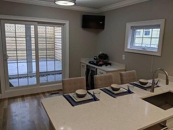 Find this newly renovated Eagle Hill three bedroom condominium. Available for immediate occupancy. A bonus room off of the living room can be used as a third bedroom or office. This first floor unit has hardwood flooring throughout, NEST thermostat, and other high end finishes. Through slider doors, you will find your own private, outdoor patio built with composite decking and tons of privacy. This unit also comes with central AC and private washer and dryer. Stainless steel KitchenAid appliances and quartz countertops complete a stunning kitchen. Only a short walk to the Wood Island and Airport blue line allowing easy access to downtown Boston. Owner offering flat rate of $100/month for all utilities other than cable/internet.