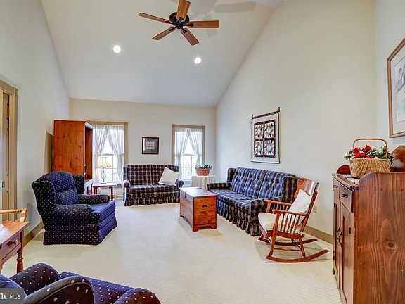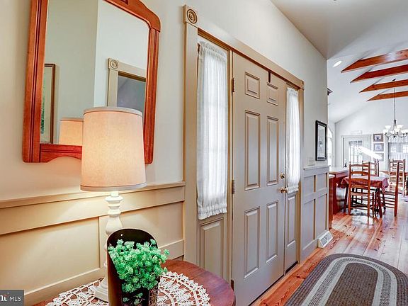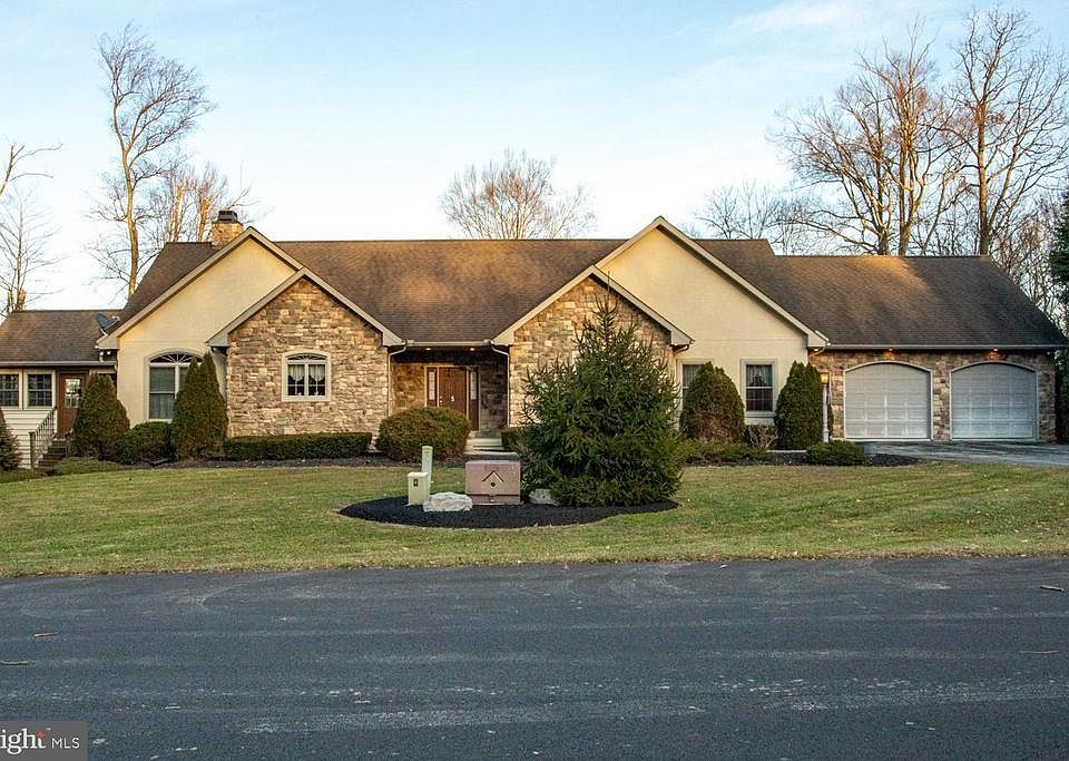 This magnificent home with nearly 4,000 square feet of living space is situated perfectly on a large private double lot. This fully custom home features 4 bedrooms, 4 full bathrooms and includes stunning wood flooring, and beautiful exposed beams and soaring ceilings. Open concept floor plan flows effortlessly between the living room, dining space, and a spacious kitchen which features an island prep area, ample cabinets, and dining area with a floor-to-ceiling stone double sided fireplace. Also includes a first floor primary bedroom suite with high ceilings, large walk-in closet and a well-appointed bathroom. Additionally the home includes a 4 season sunroom, home audio system, custom built-in shelving, and a first floor and lower level laundry rooms. The finished lower level offers excellent additional living, recreational or entertainment space to enjoy. Take in calming views of the private woodlands from the rear deck, patio, walking trails and private outdoor living spaces. The professionally landscaped garden area enhances the natural beauty of the lot, and creates lots of shade from the mature trees. There is ample parking between the oversized 2-car garage, and additional oversized garage/workshop space in the lower level.