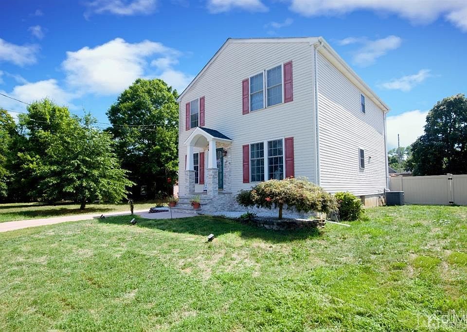Custom built colonial style home just off the beaten path, but located conveniently to NJ Turnpike for commuters! Partial stone front porch. Formal living and dining rooms. Kitchen with oak cabinets, island, new SS appliances, quartz countertops, double SS sink and sliding glass doors to the rear yard. Main level has brand new Mohawk interlocking waterproof laminate flooring. Second floor has tons of closets and updated shower/ tub surrounds, vanity tops and flooring. 13 course, high height basement. Timberline 50 year roof replaced in 2018. Central AC less than one year old. Furnace replaced 2021. Water heater 2018. Trex deck reinforced to hold a hot tub! In-ground pool with a solar panel heater. This home is move-in ready.