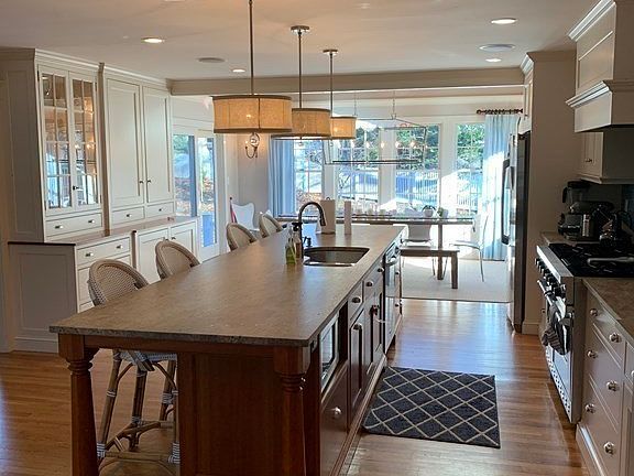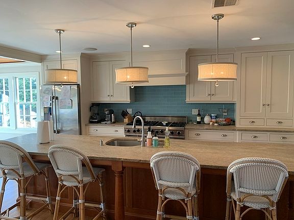 Rent this Coveted 4-bedroom colonial with over 4000 square feet of living space. Oversized and updated, the sunny kitchen boasts an expansive island, eat-in dining area and open layout which flows into the family room, a lovely living room with fireplace and sunroom! The first floor offers a formal dining room, a newly enlarged mudroom, updated 1/2 bath, hardwood floors, custom trim and high ceilings throughout. The large master en suite with its own living area perfect for another office, stunning updated master bath and 2 walk in closets! Enjoy 3 additional large bedrooms, updated family bathroom and 2nd floor laundry. The updated 3rd floor has an ideal home office or 5th bedroom with a new beautiful full bathroom. The newly updated, finished lower level is a perfect play space for kids and adults! Enjoy the full bar space and media room with 4 TVs! Head outside to the fenced in yard with a new kids Swingset/Playstation! Large deck, perfect for those outdoor evenings! 2 car garage