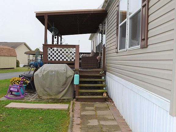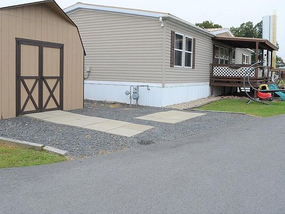 Welcome to this lovely home in a quiet park in Hamburg PA. Newly built in 2005, this home has been well cared for and loved by its current owners. Open floor plan with vaulted ceilings and lots of light, it includes a wood feature wall perfect for placement of the TV. Newer laminate flooring in living room and dining room, an eat-in kitchen with breakfast bar and separate dining space, a master bedroom and bath with garden soaking tub, shower stall and double sinks, 2 additional bedrooms and a newly renovated hall bathroom, laundry room completes the main floor. Gas heat is affordable, central air included, HOA fee includes water, sewer and trash so only utility bills are electric, gas and cable/internet if desired. A front covered deck for enjoying the outdoors, a large 24x12 shed to keep your lawn and recreational equipment, not too much yard to care for. The metal roof is less than a year old too. Affordable housing with one floor living!