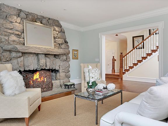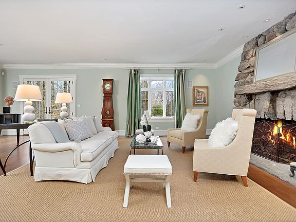 Perched above Zaccheus Mead on a tranquil cul-de-sac just two minutes from town, this captivating stone and single residence embraces the picturesque privacy of over two high acres punctuated by beautifully landscaped gardens, stone walls, rock outcropping and new saline heated pool enclosed by picket fencing. Completely renovated and expanded with exquisite taste, exceptional craftsmanship, 9-foot main floor ceilings richly finished new and restored oak/knotty pine flooring and 21st century state-of-the-art amenities, the sun-filled, remarkably detailed 6,271 square foot interior emanates the sophisticated elegance and charm of a venerable country house. French doors in the gracious living room with fieldstone fireplace and expansive windows overlooking sylvan woodlands open to a formal terrace. Elegant dining room with French doors to a casual terrace features a fireplace, china cabinetry, and butler's pantry. A magnificently designed space for family/guest gathering unites the fabulous three-exposure, tray-ceiling family room featuring a stone fireplace, built-ins and French doors to rear terrace with the gourmet granite-appointed center-isle kitchen equipped with superior Wolf, Asko, SubZerp appliances. A charming study with built-ins and lovely terra cotta floored powder room with Perrin & Rowe fixtures complete the main floor. Five bedrooms with generous closets, four baths and laundry room are on the second floor. The sublime master suite features a fireplace with carved wood mantel; spacious, windowed walk-in custom dressing room; and luxurious radiant-heated marble bath with double-sink vanity, BainUltra tub, steam shower. Recreation/game room, exercise room, mud room, two car garage on lower level. Indoor/outdoor sound; generator; two-car garage.