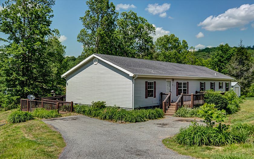 Rolling land, hillside setting, and spacious rooms are only some of this home's bright elements that will make you smile! Up the paved drive is the front porch/deck with wraparound walkway to back deck complete with bird house; bonus shed for storage. Indoors, find a truly "open" layout: to one side, the kitchen with abundant cabinetry, sparkling white appliances, wood cabinetry with plate rack, and island...to the other, a spacious living room with branching hallways leading to the rest of the home. Pamper yourself in the master suite bath with twin-sink vanity, jetted tub and huge shower; utility room has washer/dryer hookups. Great location and perfect for those wanting 1 level living!