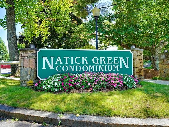 Highly Desirable Natick Green Two Bedroom Condo. Conveniently located on the first floor this Condo boasts a Granite Kitchen with S/S Refrigerator, S/S Stove, New Built in S/S, Microwave, Dishwasher, Disposal, and Fresh Paint. Spacious Formal Living Room freshly painted with Large Mirrored Door. Formal Dining Room with Chair Rail. Modern Bathroom with Stylish Tiles surrounding the Tub, Freshly painted, and New sink faucet and light. Central Air! Gleaming Pergo flooring throughout! New Mini Blinds. Slider with New Vertical Blinds leading to a Sunny Patio which offers extra storage.Slider opens to patio with scenic views of landscaping and trees. Complex includes: Swimming Pool, Tennis Court, Hot Tub and Clubhouse/meeting area. Close proximity to many restaurants, shops, and entertainment. Conveniently located close to the "T" station, Mass Pike, Routes 9, 30 & Natick Mall.
