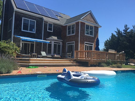 Great vacation home! Patio doors open to huge deck perfect for entertaining during the summer days and nights. Enjoy the heated pool or close by West Neck Harbor for boating or swimming, Central AC, fireplace and finished basement. May 18-31 $10k; June 1-15 $12k; July 1-15 $20k.