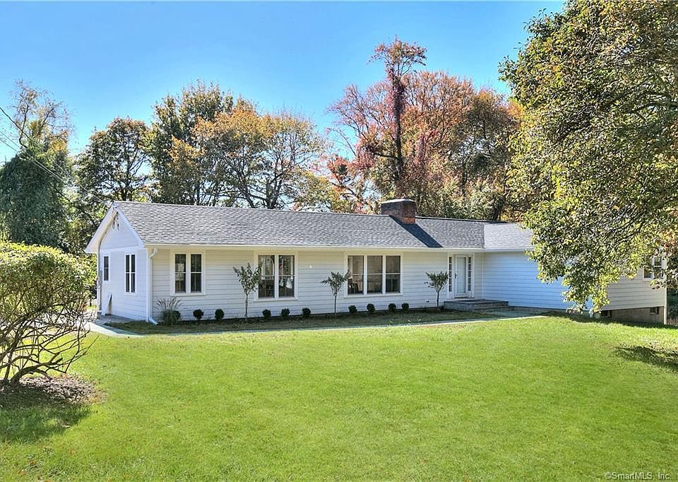 An incredible opportunity awaits in the premier Greens Farms section of Westport. Discover all that this newly-remodeled ranch-style home with a pool offers, tucked away peacefully at the end of a quiet lane in the midst of the most desired area. This is one of the best and most unusual opportunities to acquire a home that has benefitted from a long list of recent improvements and is being offered at a very popular price point which is difficult to match in this incredible location. Renovated with modern style and flair, this chic home is set on a picturesque acre of land. Step inside and enjoy the spacious, sun-filled interiors. The open concept living space includes a vaulted ceiling and beautiful views through expanses of glass, all contributing to the airy and sophisticated atmosphere. The great rm includes a fpl w/marble surround & custom woodwork accent wall, leading through to the upscale gourmet kitchen with large center island, Thermador appliances including built-in coffee center and two dishwashers. The breakfast rm has French doors out to a patio and this wonderful space has views out to the pool. The dining room has a wall of built-in cabinetry for storage. The home office/library is tucked off to one side with an adjacent full bath for flexible use of this space. The primary BR suite has a chic bath w/oversized lux shower. The walk-out LL has French doors leading to the property, several windows filling the space w/light, addl. bedroom & rec spaces.