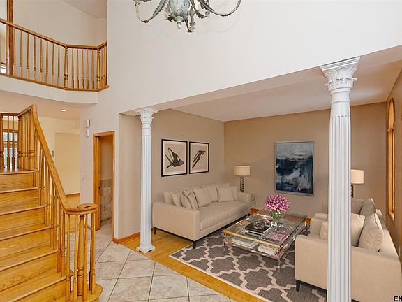 This Beautiful Custom Built Home will call you in as soon as you drive by it! Located on a quiet Cul-de-sac with 2 acres of land. When we say custom...we definitely mean it. The unique floor plan will have you wanting to entertain as much as possible.....or if that's not your thing, just relax and enjoy the open flowing rooms. Separate carriage house with 2 car garage underneath is currently used as an office (possibly could be an In-Law). Minutes From RPI Tech Park, Regeneron & Interstates.