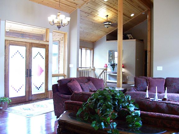 Enjoy 200' of river frontage in this stunning year round home w/in-law area. Custom built in 1991, this beautiful home has recently been updated w/fresh paint, carpet & more. Country sized kit w/new micro, stove & flooring. Great room w/vaulted wood ceiling & fireplace. Master has private bath w/Jacuzzi tub & access to recently stained decks. In-law area has separate entrance, 3/4 bath & fireplace. 3 car attached garage w/compressor. 20 min drive to FTC! Hike, fish & float out your back door!