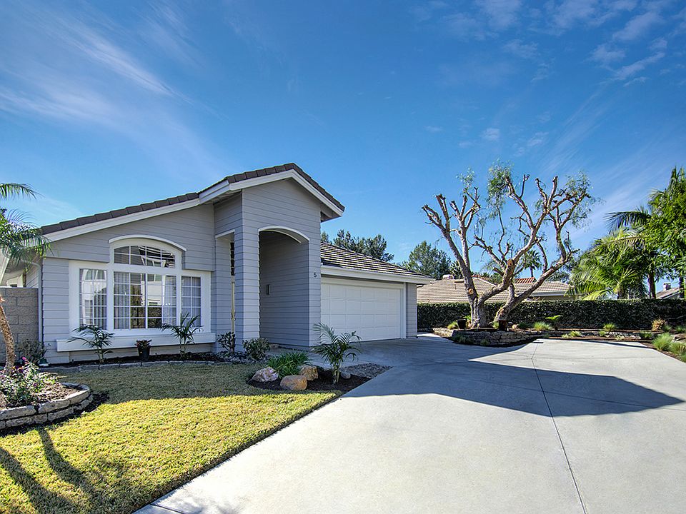 Enjoy the ease and luxury of single story living at 5 Snowdon. This "Summit Crest" home is situated at the end of a cul-de-sac and welcomes you with an extra-long driveway. Fabulous open floor plan flows wonderfully with 3-bedrooms and 2-baths. Hard wood floors greet you to the formal living & dining area with high ceilings for a warm & inviting feeling. Kitchen opens to family room with beautiful stacked stone fire feature. Master bedroom features a walk-in closet with tons of storage, bathroom with dual sink vanity, walk-in shower, and huge soaking tub. The master bedroom has outdoor access leading into the backyard with entertaining area and hot tub. Backyard is a relaxing oasis with the peaceful babbling brook, fire feature, and offers tons of privacy with no neighbors behind. Backyard is wonderfully landscaped with drought friendly St. Augustine grass, hardscaping, and a 2 huge side yard areas. Conveniently located interior laundry room a 2-car garage upgraded with epoxy floors. Recently upgraded air conditioning, furnace, roof, and more. Located in the beautiful golf course community of Dove Canyon. Enjoy the best of Dove Canyon living with community pool & spa, tennis courts, parks, 24-hour security, hiking trails, and too many amenities to list! No Mello Roos=Low Tax Rate