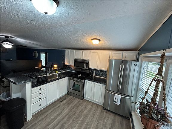 Hard to find 3-bedroom 2 bath recently renovated single wide in local mobile home park. This home was tastefully updated with modern counter tops in the kitchen and bath. Other updates include a newer steel roof, new flooring throughout, carport and shed all done with in the past 7 yrs.
