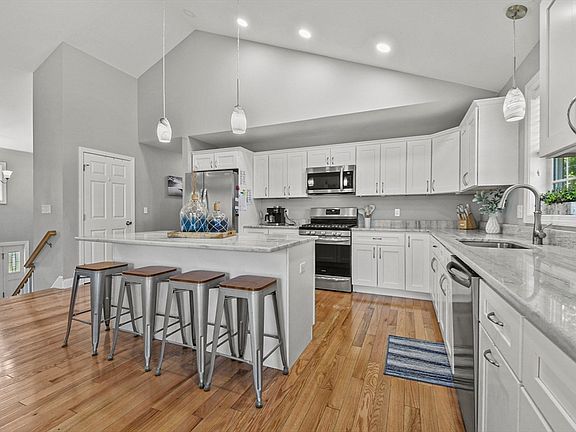 • Features: Flooring - Hardwood, Countertops - Stone/Granite/Solid, Countertops - Upgraded, Kitchen Island, Breakfast Bar / Nook, Cabinets - Upgraded, Deck - Exterior, Exterior Access, Open Floorplan, Recessed Lighting, Slider, Stainless Steel Appliances, Gas Stove