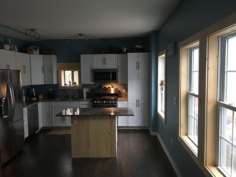 2bed1bath condo/house on second floor. Big eat in kitchen. 1sr floor just built with premium everything. Propane stove and appliances. Granite counters,deep dark tub,enormous living room extra large kitchen. In slab radiant heat throughout. Premium pergo flooring. Radiant heated large garage. House is on a high piece of dry land overlooking a large field with southern exposure. Set back from rt 9 150 feet for lots of privacy. All heat and hot water are produced by two wall hung condensing boilers. Very effieciant system costs around 1200$ for heat ,hot water, dryers and cooktop. 1st floor is beautiful. I'm just finishing the trim and is the reason I have not posted any pictures. Living room is pickled pine board. Bathroom has a double undermount 60 inch vanity with carerra marble top and soft close doors. Deep soaker tub and kohler surround. Master bed has 9 ft x6 foot his and her closets. Tall ceiling are throughout the entire first floor. Wide hallways and barn doors on the bedroom and bathroom add the the enormous feel. Nearly all lighting is dimmable. Living room and kitchen both have trackless track lights that dim and adjust. Attic is 36 feet long 6'6' tall and 12 feet wide for all your storage needs.