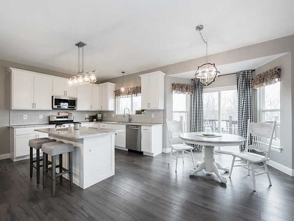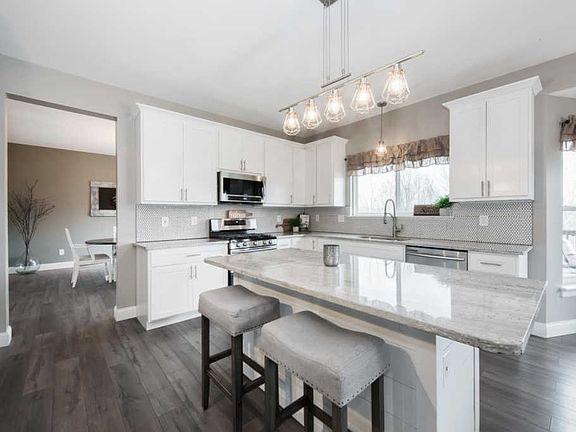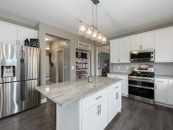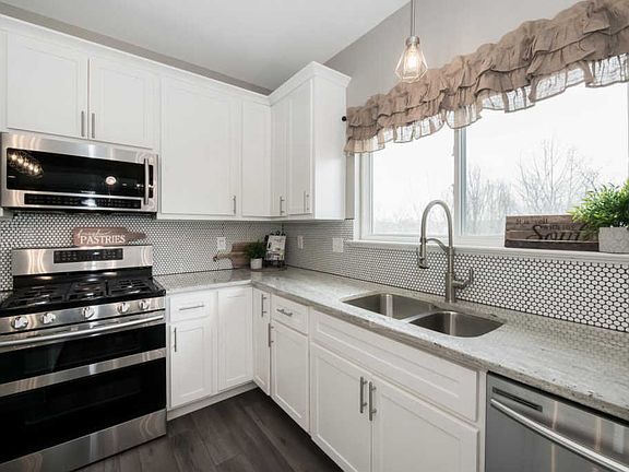 This immaculate & adorable farmhouse chic 2-story is a show-stopper! Easy-care luxury vinyl plank floors, soft grey walls & 9' ceilings on the main level adorned by spectacular lighting. Stunning kitchen with 42" white shaker cabinets, granite counters, breakfast bar island, tile backsplash & stainless appliances, including a 5-burner gas range & French door fridge, opens to the family room with an impressive stone gas fireplace & bay window w/gorgeous views. Upstairs is a huge loft with vaulted ceilings, surround sound & built-ins. The private master suite also has vaulted ceilings, 2 walk-in closets & a beautiful bath with separate vanities, corner jetted tub & shower. Dual, zoned HVAC with Nest thermostat controls. Walk-out lower level w/roughed-in bath ready for your finish. Backs to common ground & a walking trail leading to the playground & sport court. 3-car garage & Rachio smart irrigation control. 13-mo home warranty included! Easy access to I-64/364 & amenities. See it today!